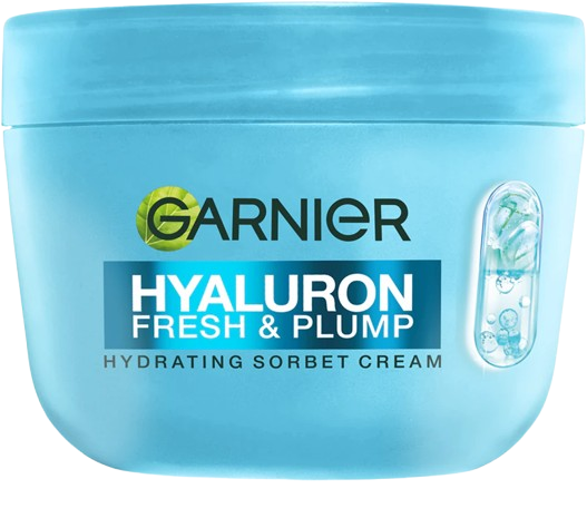 Garnier Sorbet Cream Fresh & Plump cu 4% Niacinamida + Acid Hialuronic pentru un ten mai hidratat si efect de reumplere