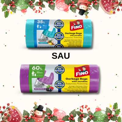 Premium Handles cu aromă de fructe tropicale 35L 30 bucăți: Sacii menajeri FINO PREMIUM HANDLES, cu mânere practice și aromă de